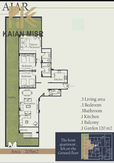 ارضى ٢٠٥ م للبيع امامي بجاردن حدود الشقة كلها