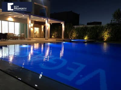 فيلا مستقلة 1000 متر بأقل سعر للبيع مفروشة بإطلالة على حمام السباحة جاهزة للسكن في هاسيندا باي بالم هيلز