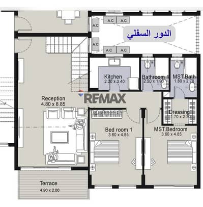 الدور الثالث: ٢ نوم + ٢ حمام.