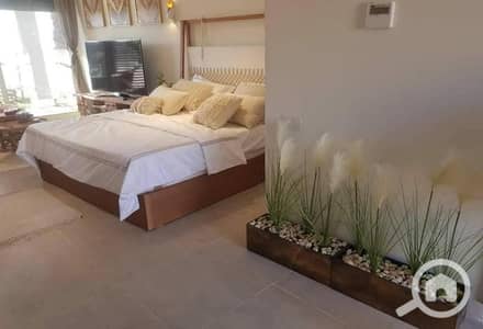 شاليه ارضي بجاردن للبيع غرفة بفيو مميز علي حمام سباحة جاهز للاستلام فوري وبرايم لوكيشن في مشروع جايا الساحل الشمالي راس الحكمة بجانب ماونتن فيو