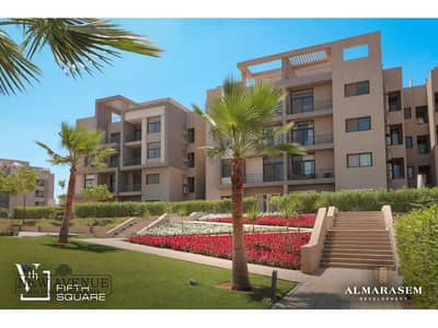 شقة أرضية كاملة التشطيب مع تكييفات في فيفث سكوير، موقف سيارات تحت الأرض، نادي، حديقة ٧٥ مترًا مربعًا