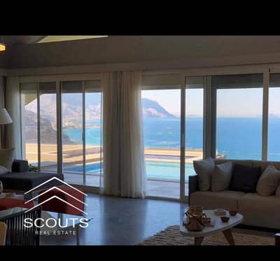 فيو خيالي علي البحر واللاجونشاليه للبيع في العين السخنه بجوار قرية المونت جلاله و فندق موفنبيك