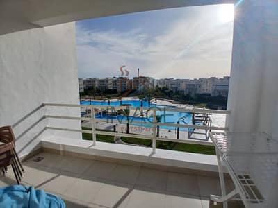 شاليه 120م + رووف للبيع في أمواج الساحل الشمالي، تشطيب كامل وفرش كامل، غرفتين نوم منها ماستر، موقع مميز وإطلالات رائعة، جاهز للاستخدام الفوري.