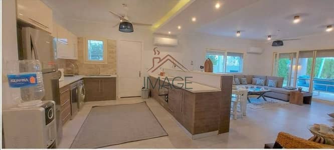 سينيور شاليه للبيع بهاسيندا باي الساحل الشمالي، 220م² + حديقة 250م²، 3 غرف منها 2 ماستر، 3 حمامات، تشطيب ومفروش بالكامل، موقع مميز أول صف جولف وبحيرة.
