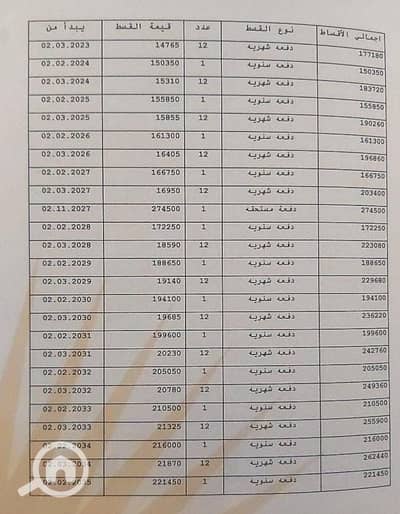 اجمالي العقد/ 5 مليون 600 الف تقسيط على 12 سنة