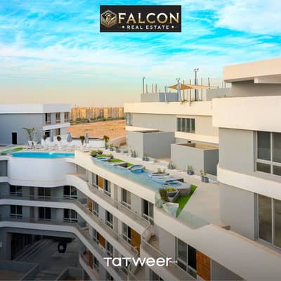 بفيو مباشر علي pool شقة للبيع في بلوم فيلدز المستقبل سيتي بجانب هاب تاون و اعمار وسوديك