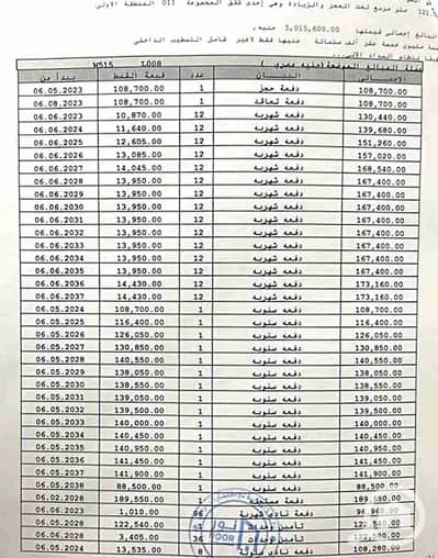 اجمالي العقد 5,000,000 اقساط علي 15 سنه