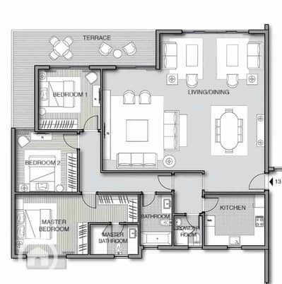 تقسيم داخلي / 3 نوم + 3 حمام + دريسينج + رسيبشن 3 قطع + مطبخ