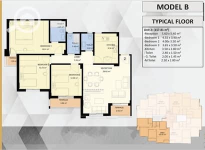 شقه 157 متر دور متكرر 3 غرفه+ 3حمام - مطبخ – ريسبشن كبير - 3بلكونة
