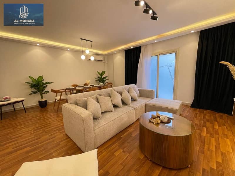 الوحدة تشطيب سوبر لوكس ومفروشة بالكامل بفرش حديث وأنيق، وجاهزة للسكن الفوري.