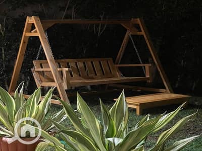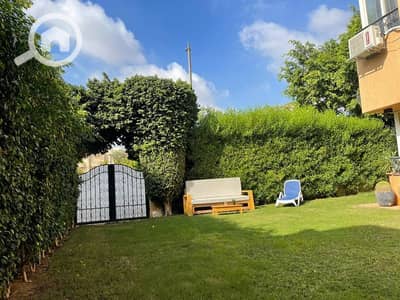 بتفتح على حديقة كبيرة واسعة فيها برجولة أنيقة بتديك جو مريح ومناسب للقاعدة أو التجمعات العائلية