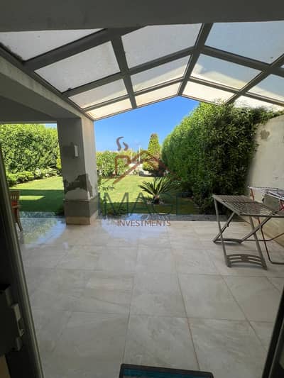 شاليه جونيور للبيع في هاسيندا باي، 175م² مع حديقة 120م²، 3 غرف نوم منهم 2 ماستر، 3 حمامات، متشطب ومفروش بالكامل، موقع مميز أمام حمام السباحة