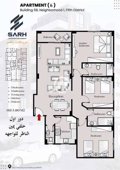 شقه 180م المنطقه الخامسه خلفي بحري من المالك بدون عمولات اسانسير + عداد مياه منفصل + عداد كهرباء