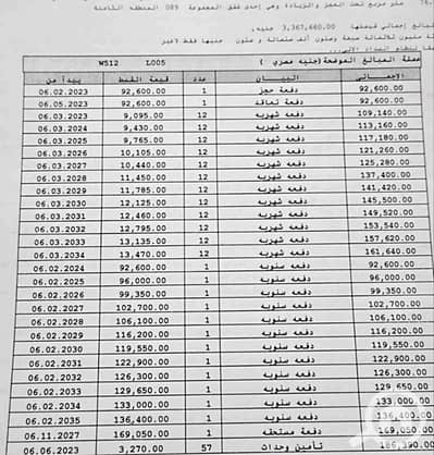 إجمالي العقد: 3,367,000 اقساط علي 12 سنه .