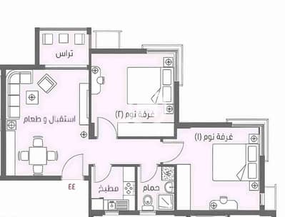 التقسيم الداخلي: 2 غرفة نوم + 1 حمام + ريسيبشن + حمام + تراس .