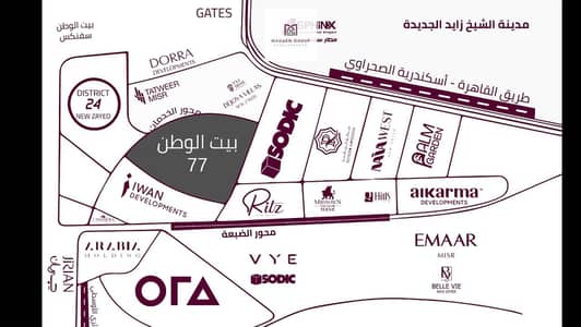 - في قلب نيو زايد اول طرح بيت وطن فيلات ارضي واول وثاني وروف