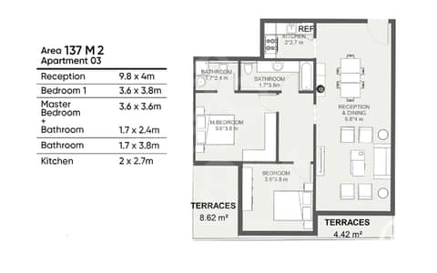• غرفتين منهم غرفة ماستر - ريسبشن قطعتين - 2 حمام
