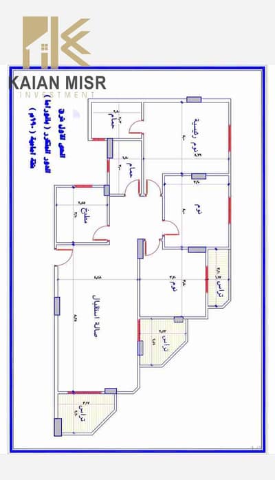 مقسمة الي : ٣ غرف - ٣ حمام - رسيبشن قطعتين - مطبخ - بلكونة