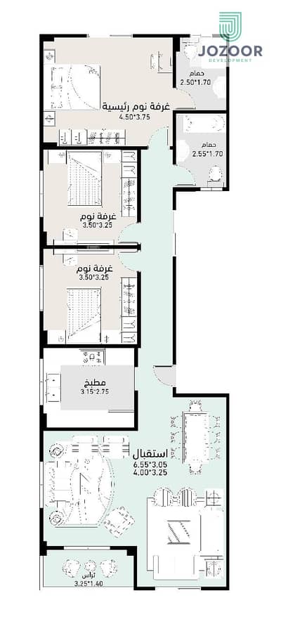 شقة 195 متر بتقسيمة مثالية تناسب أسرة بتحب الراحة والخصوصية.