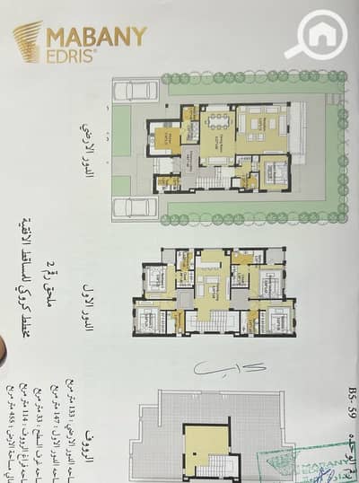 الدور الاول 4 غرف نوم منهم غرفتين ماستر 2 حمام
