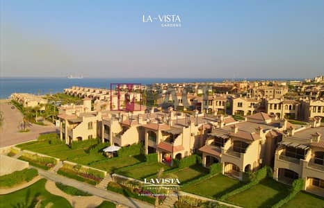 شاليه للبيع ارضي بجاردن استلام فوري فيو pool وبحر متشطب بالكامل في لافيستا جاردنز العين السخنه جاهز فورا في قلب la vista gardens