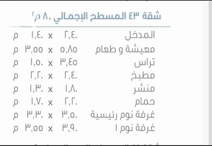 مساحة 80م ( 2 نوم - حمام - مطبخ - ريسبشن - تراس )