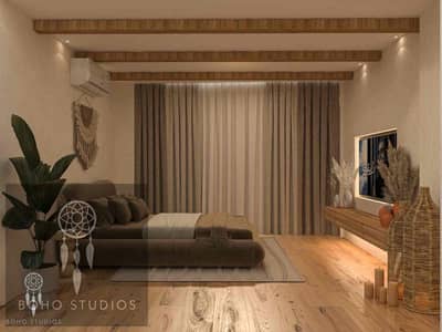 امتلك استوديو فندقي فاخر بمساحة 155م (90م داخلية + 65م خارجية) بستايل Boho وتشطيب Ultra Super Lux