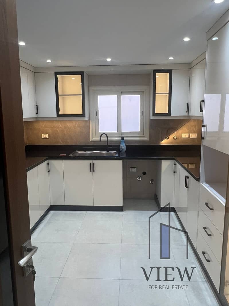 شقة تمليك اول سكن مساحة 250 م برج حديث بالطابق الخامس بالمطبخ