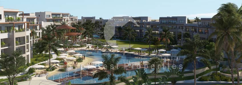 شقة غرفة كاملة التشطيب في سوما باي للبيع بمقدم 5% و اقساط برؤية بحرية و مباشرة علي لاجون