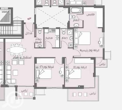 الشقة بأفضل تقسيمة ( 3 غرف نوم و 3 حمام منهم حمام ماستر ومطبخ وريسبشن ودريسنج و2 تراس )