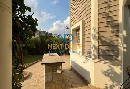 بجوار الجامعة الامريكية شقة بحديقة تشطيب فاخر بالتكييفات موقع مميز بالقرب من مطار القاهرة
