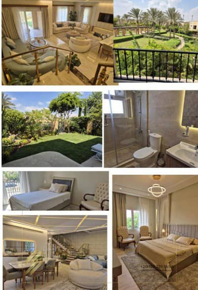 مفروش بالكامل: الطابق الأرضي: صالونان + غرفة طعام + مطبخ مجهز بجميع الأجهزة + حمام ضيوف + مخزن + تكييف مخفي + تراس + حديقة مع نافورة مياه