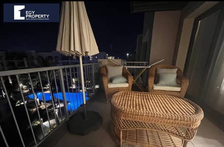 شاليه مفروش للبيع مطل على حمام السباحة في مارينا 2 مراسي الساحل الشمالي - إعمار
