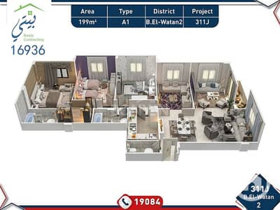 شقة 199م بالحي التاني بيت الوطن خطوات من شارع التسعين و دقائق من النادي الأهلي