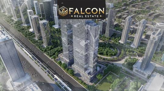 امام البرج الايقوني مباشره وعلي محور بن زايد الرئيسي وامام المونوريل في اهم منطقه استثماريه في العاصمه الاداريه