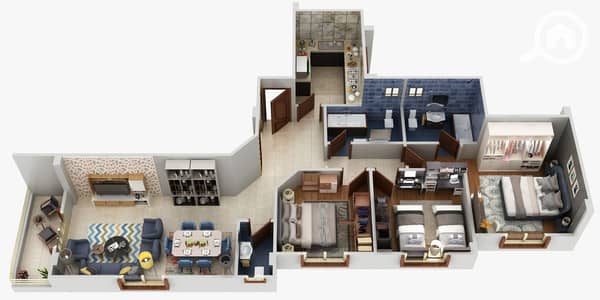 شقة 150م واجهة بالحي السابع بجوار محور محمد بن زايد و المنوريل و دقائق من النادي الأهلي