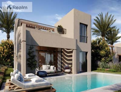 فيلا فاخرة جدًا بإطلالة كاملة على البحر وحديقة جاهزة بالتشطيب.