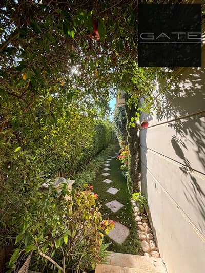 الحديقة الخلفية: مزروعة + برجولة + تراس