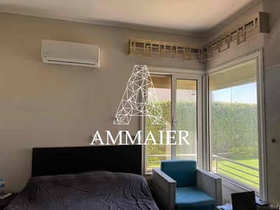 - تصميم داخلي مشرق مع نوافذ كبيرة تطل على الحديقة