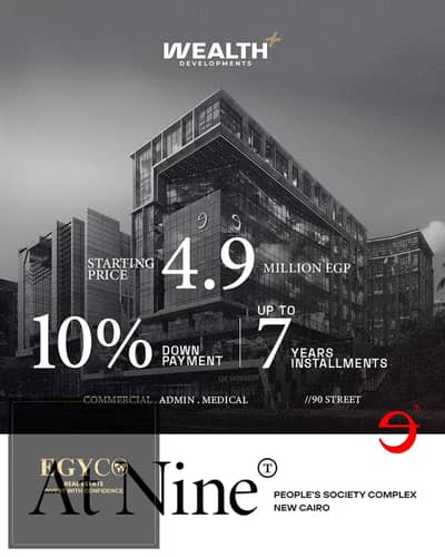 فرصتك للاستثمار في اقوي برج اداري و تجاري و طبي في التجمع الخامس علي التسعين الشمالي مباشرة