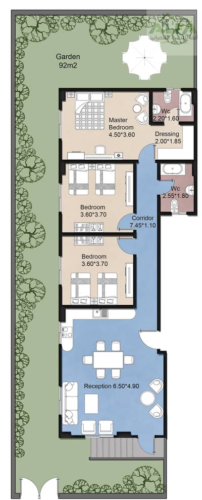 - 3 غرف نوم منهم غرفة ماستر + دريسنج