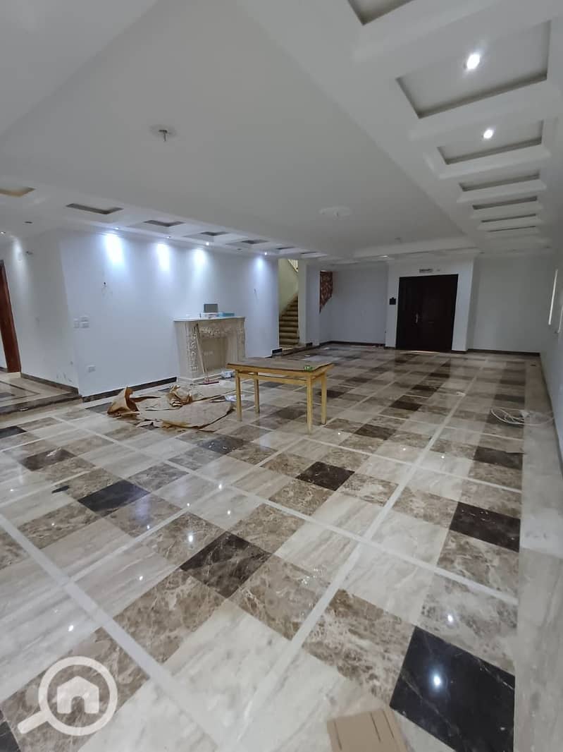 الدور الارضى عباره عن رسيبشن ومطبخ وحمام ضيوف وغرفة مربيه بالحمام