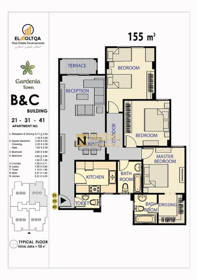 - المساحة والتقسيم: شقة 155 متر مربع (عادة 3 غرف نوم / 3 حمام )