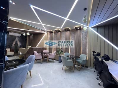 ١- ريسيشن كبير به كونتر استقبال وانتريه و3 ترابيزة شورووم وترابيزة اجتماعات ب ٦ كراسي ومكانين مخصصين لشاشات عرض كبيرة وتراس بانوراما كبير وحمام خاص للعملاء
