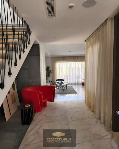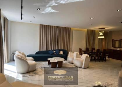 ريسبشن كبير، مطبخ، دبل فيو تيراس ، 4 غرف منهم غرفه ماستر مع دريسنج و حمام خاص و5 حمام
