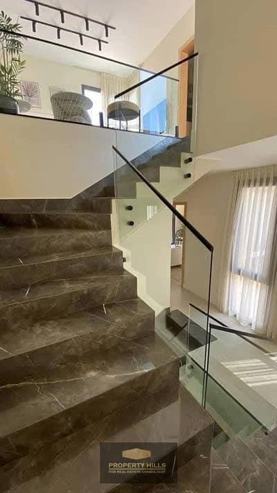 ريسبشن كبير، مطبخ، دبل فيو تيراس ،4 غرف منهم غرفه ماستر مع دريسنج و حمام خاص و5 حمام