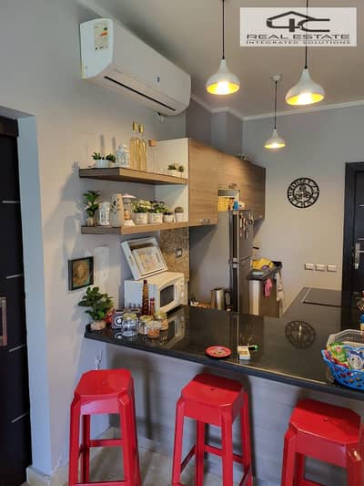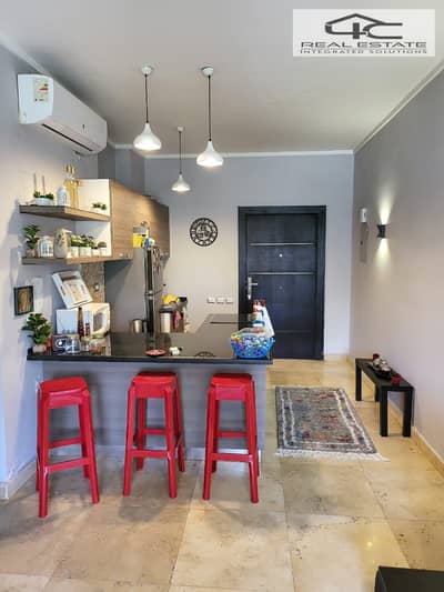 شقة كورنر للايجار غرفتين تشطيب الترا سوبر لوكس بالفرش برايم لوكيشن اوبن فيو جاردن في The village بالم هيلز التجمع الخامس القاهرة الجديدة