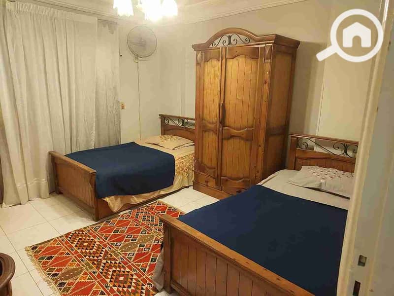 شقه مفروشه للايجار كورنيش المعادي طره ابراج الشرطه بتشوفي النيل من الجانب تتكون من غرفتين نوم وريسبشن وحمام ومطبخ دور سادس 2اسانسير