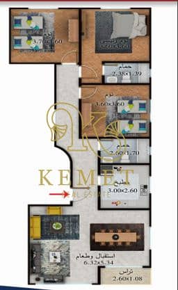 - 3 غرف نوم