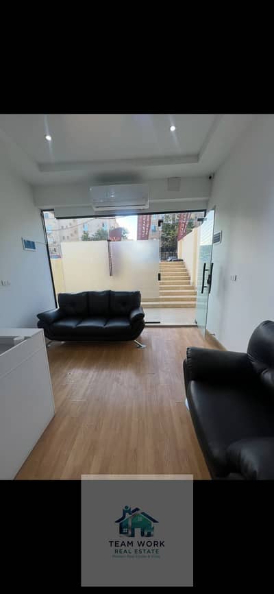 مكتب مميز للإيجار في بيڤرلي هيلز بالشيخ زايد، دور أرضي بمدخل خاص، مساحة واسعة مع أوت دور، ومفروش بالكامل.